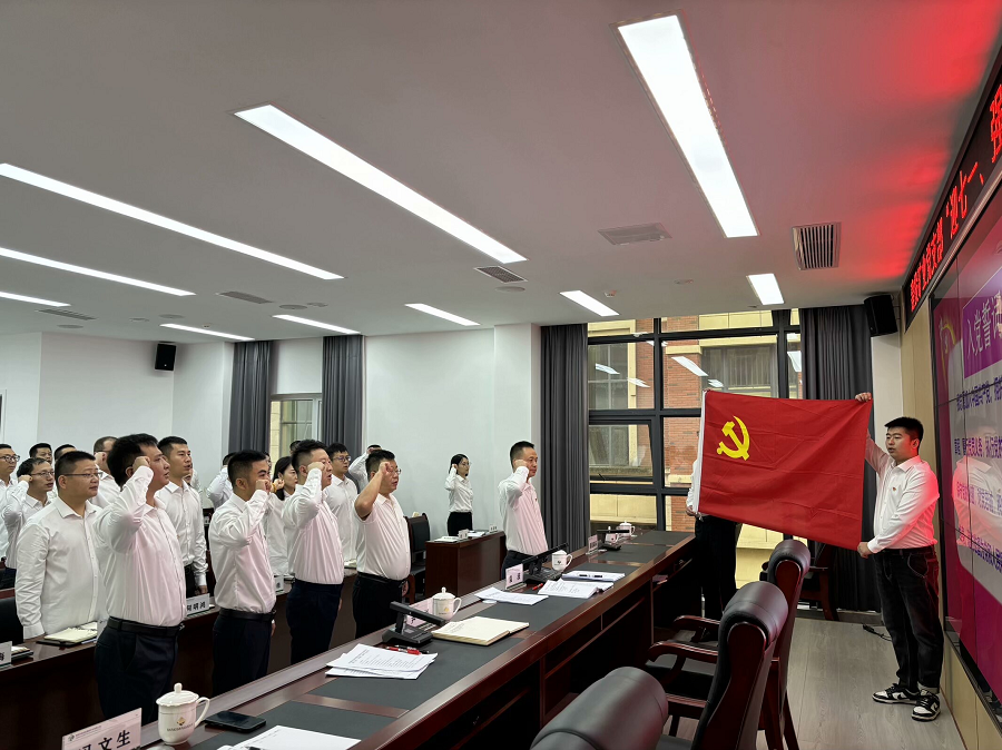 6月27日上午,活動在莊嚴的國歌聲中開始。公司黨支部書記、董事長袁波同志帶領(lǐng)全體黨員重溫入黨誓詞。面對鮮紅的黨旗,大家一起回憶入黨時那激昂的心,初心使命歷久彌堅。
