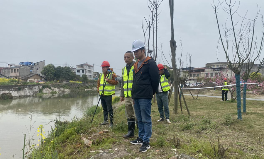 3月29日,公司副總經(jīng)理馮文生帶隊檢查秀水河秀水鎮(zhèn)場鎮(zhèn)段防洪治理工程推進情況。(素材來源:工程項目部 張瑞桃)