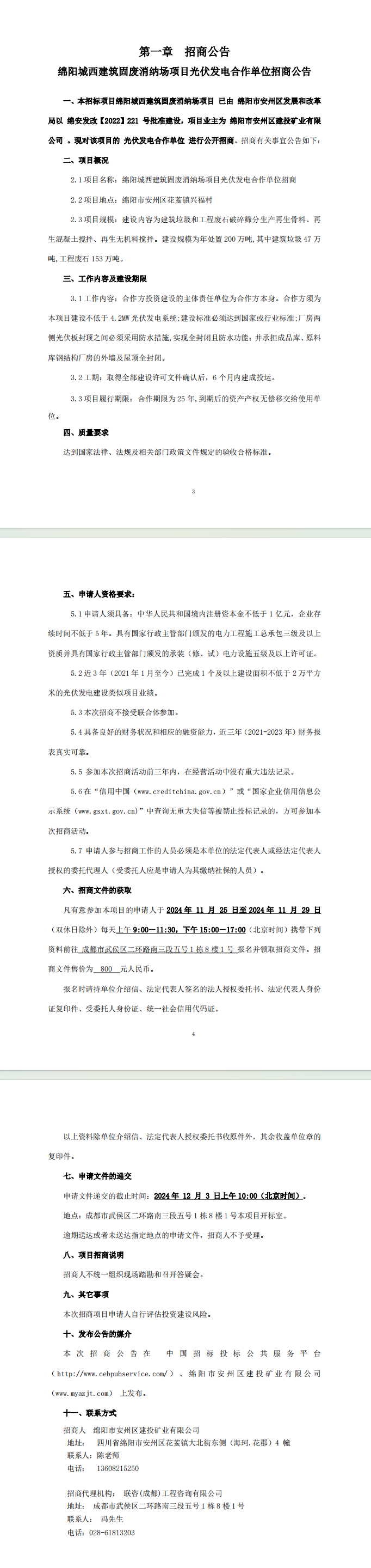 綿陽(yáng)城西建筑固廢消納場(chǎng)項(xiàng)目光伏發(fā)電合作單位招商公告
