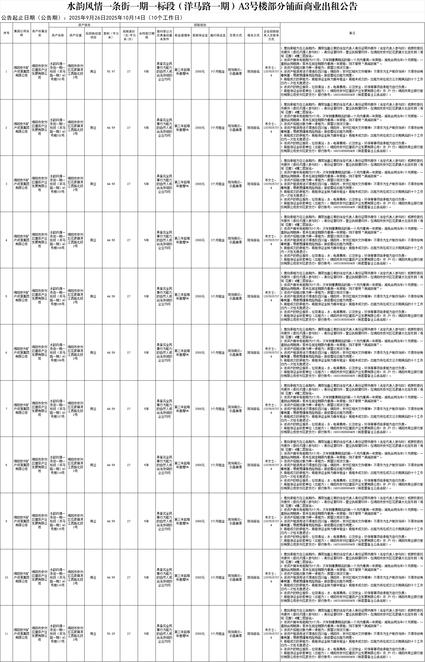 水韻風情一條街一期一標段(洋馬路一期)A3號樓部分鋪面商業(yè)出租公告