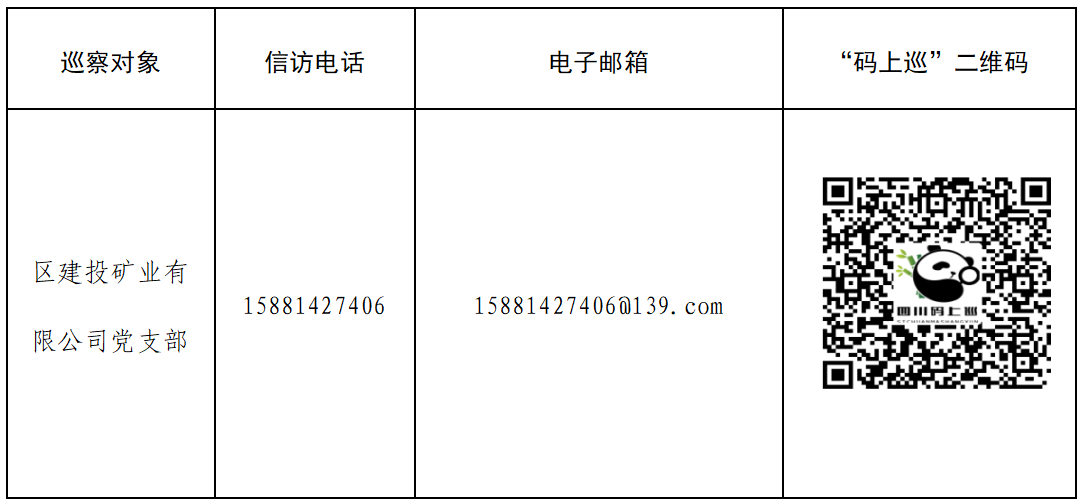 據(jù)悉,區(qū)委第三巡察組將進(jìn)駐區(qū)建投礦業(yè)有限公司開(kāi)展為期30天的巡察監(jiān)督。巡察期間(5月13日—6月13日)設(shè)專門(mén)信訪電話:15881427406,電子郵箱:15881427406@139.com,并在區(qū)建投礦業(yè)有限公司正門(mén)保安處(安州區(qū)花荄鎮(zhèn)大北街074號(hào))、區(qū)建投礦業(yè)有限公司一樓子公司辦公點(diǎn)(安州區(qū)花荄鎮(zhèn)大東街005號(hào))設(shè)置了征求意見(jiàn)箱,同步發(fā)布四川“碼上巡”二維碼,并設(shè)有信訪接待點(diǎn)(受理群眾來(lái)訪時(shí)間為工作日9:00-12:00;14:00-17:00),信訪接訪點(diǎn)地址為:安州區(qū)群眾來(lái)訪接待中心(安州區(qū)花荄鎮(zhèn)銀河大道8號(hào))。根據(jù)巡視工作條例規(guī)定,巡察組主要受理反映區(qū)建投礦業(yè)有限公司黨支部領(lǐng)導(dǎo)班子及其成員、下一級(jí)機(jī)構(gòu)領(lǐng)導(dǎo)班子主要負(fù)責(zé)人、重要崗位領(lǐng)導(dǎo)干部是否存在違反政治紀(jì)律、組織紀(jì)律、廉潔紀(jì)律、群眾紀(jì)律、工作紀(jì)律和生活紀(jì)律等方面的舉報(bào)和反映。其他不屬于巡察受理范圍的信訪問(wèn)題,將按照分級(jí)負(fù)責(zé)、屬地管理原則,轉(zhuǎn)交有關(guān)單位辦理。