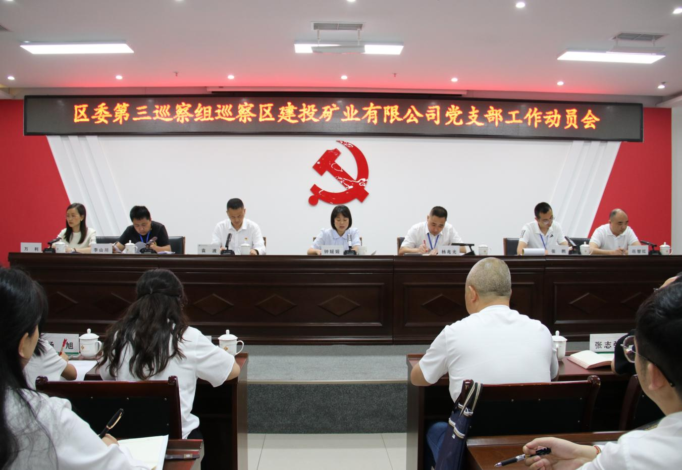 區(qū)委組織部、區(qū)紀(jì)委監(jiān)委駐財(cái)政局紀(jì)檢監(jiān)察組相關(guān)領(lǐng)導(dǎo)、區(qū)委第三巡察組相關(guān)人員、區(qū)建投礦業(yè)有限公司全體班子成員參加會(huì)議,區(qū)建投礦業(yè)有限公司全體干部職工列席會(huì)議。